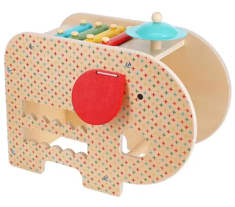 Petit Collage Drevený hudobný slon 5v1 / od 18 mesiacov