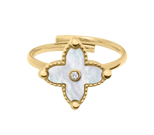 Pierre Lannier Nastaviteľný pozlátený prsteň s perleťou Rubya BJ23A3211