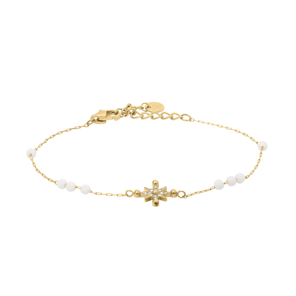 Rosefield Pôvabný pozlátený náramok s ružovými korálkami Essentials JBPSG-J813
