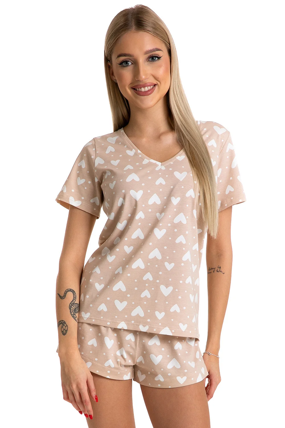 Nočná košeľa značky Piu Bella. model PKK-44. vyrobené z 94% bavlny, 6% elastanu. dĺžka rukávov: krátke. dĺžka: krátka. dámsky výrobok. typ výstrihu: špicatý.