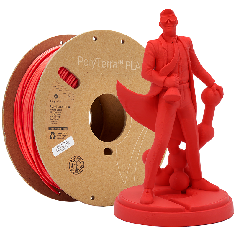 PolyTerra ™ PLA je nová ekologickejšia generácia filamentov od spoločnosti Polymaker, ktorá je od základu navrhnutá tak, aby bola šetrná k životnému prostrediu. Je kombináciou organických minerálov a PLA, čo výrazne znižuje obsah plastov a vytvára ekologickejšie 3D tlačový materiál. Tento materiál sa tlačí rovnako ako PLA, takže nebudete musieť meniť žiadna tlačová nastavenia. Navyše v niektorých vlastnostiach (napríklad premostenie alebo previs) dosahuje lepšie výsledky ako klasické PLA. Výsledný výtlačok má krásne matný povrch, čo lepšie skryje línie vrstiev.