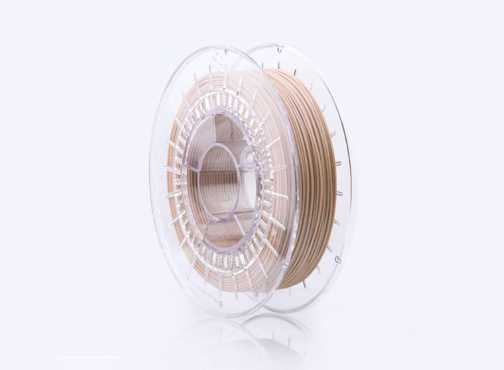 PLA WOOD je materiál vyrobený kombinací dvou prírodnách materiálů PLA (vyroben ze škrobu) a drobných drevených pilín částic (40%) a je proto šetrný k životnímu prostředí a zároveň dodává výtlaču neobvyklý vzhled a strukturu a dokonce i vůni dřeva. Materiál lze po tlaču dále upravovat, lakovat či brousit jemným smirkovým papírem. Výrobce uvádí, že je vhodné použít trysky o průměru alespoň 0,5 mm a to nejlépe tvrzené, aby nedocházelo k jejich obrušování.