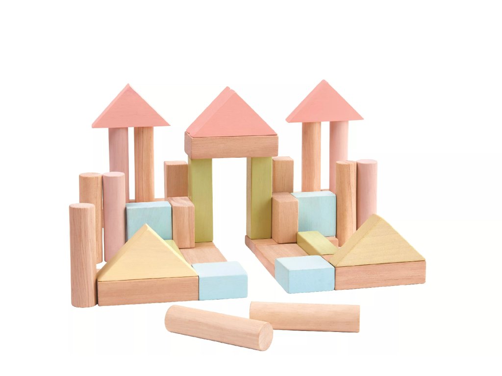 Jednoduchá drevená stavebnica z dielne Plan Toys, vhodná pre rozvoj detskej kreativity a predstavivosti. Stavebnica je koncipovaná ako didaktická hračka podporujúca voľnú hru a stavanie.