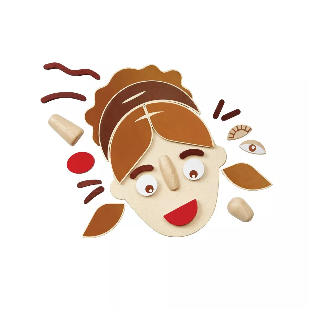 Hra Zostav si tvár od značky PlanToys umožňuje vyjadriť emócie alebo vytvoriť známu tvár zostavením rôznych tvárových čŕt.