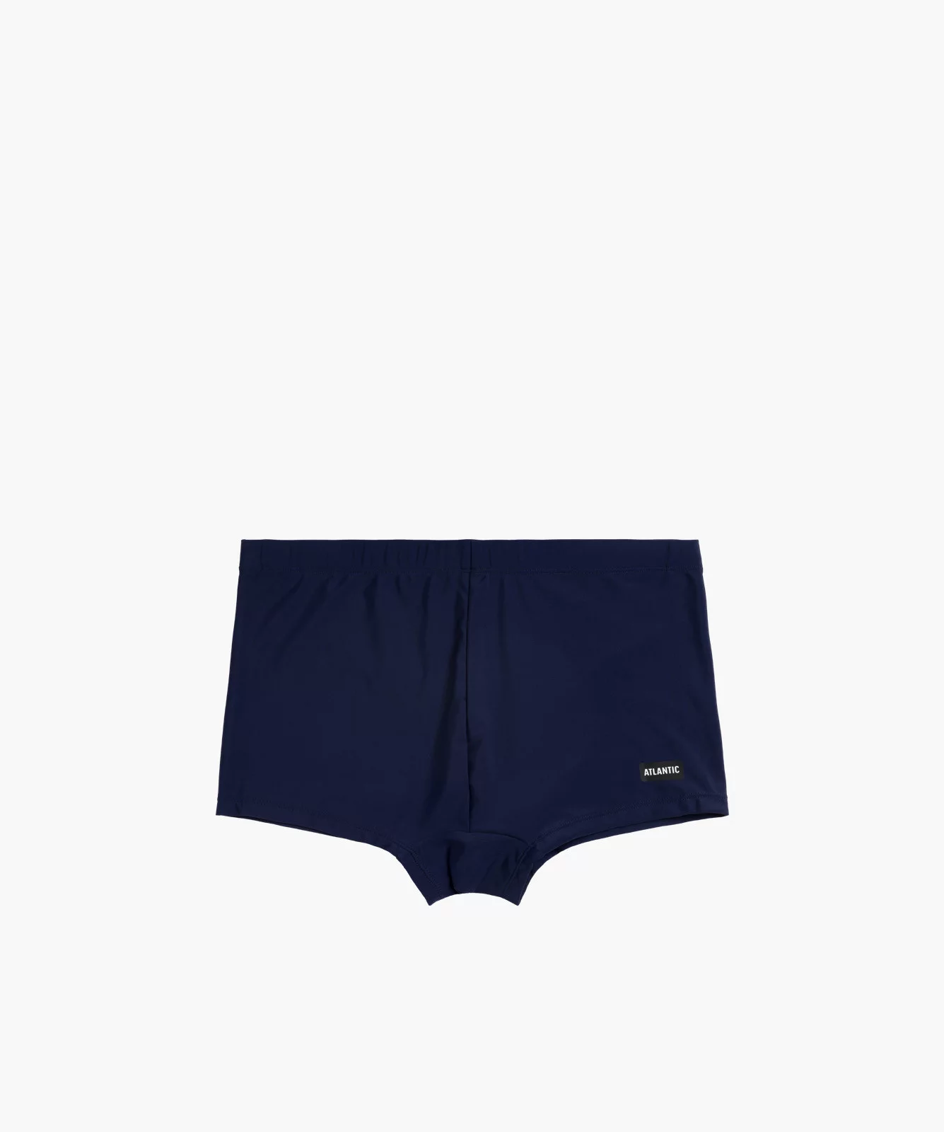 Objavte plavecké šortky, pri ktorých pohodlie a prispôsobenie sa telu nepoznajú hranice. Hladké tmavomodré plavky zdobí malé logo Atlantic. Plavky majú univerzálnu dĺžku nohavíc a stredne vysoký pás označený vnútornou šnúrkou na stiahnutie. Vnútorná strana šortiek je tiež podšitá. Plavky sú vyrobené z polyamidového rýchloschnúceho úpletu, do ktorého sme pridali elastan. Tkanina je odolná voči slnečnému žiareniu a časom nestratí farbu ani tvar. 80 % polyamid, 20 % elastan