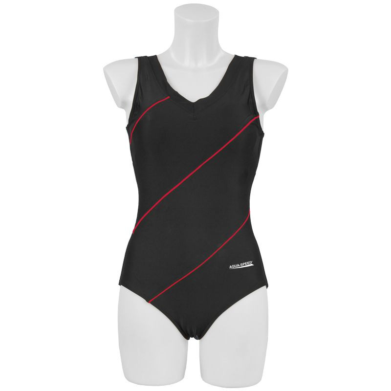 Dámske tričko AQUA-SPEED SOPHIE black/red 16 /441 Vlastnosti: Tričko SPEPHIE SQUIPHIE je vyrobené z vysokokvalitného materiálu, ktorý je vhodný pre všetky typy oblečenia: Dvojfarebné plavky s vykrojenými košíčkami, ktoré lichotia postave. Jemne odhalený chrbát, nízko vykrojené nohavičky, lemovanie. Vynikajúca kvalita a spracovanie. Zloženie tkaniny s vysokou odolnosťou voči chlóru: 80% polyamid, 20% elastan.