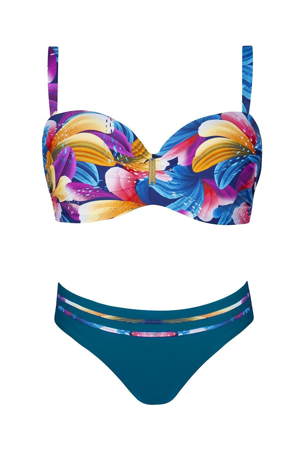 Dámske dvojdielne plavky - podprsenka s kosticami a vystuženými košíčkami - krásna kvetinová potlač - pre veľkosti 36B/3BC, 38B/38C, 40B/40C, 42B push-up košíčky sú súčasťou balenia - obvod s kovovou sponou - nohavičky klasického strihu zdobené prešívaním Zloženie: 85 % polyamid, 15 % elastan