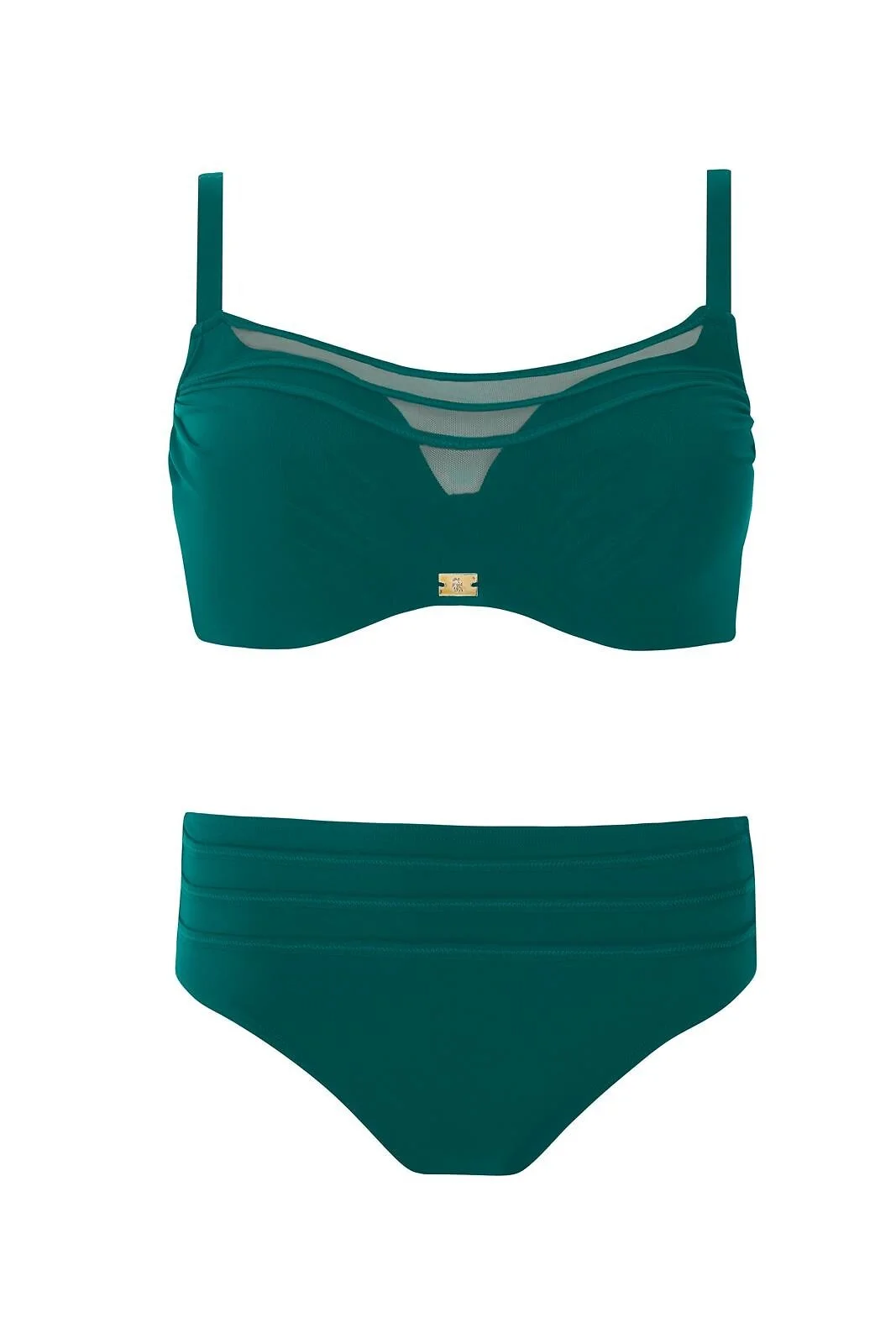 Dvojdielne plavky - vystužený košíček s kosticami - push-up vložka vo vybraných veľkostiach 38C, 40C - nastaviteľné, odnímateľné ramienka - nastaviteľné zapínanie na chrbte - klasické nohavičky - odolné voči chlóru Zloženie: 85 % polyamid, 15 % elastan