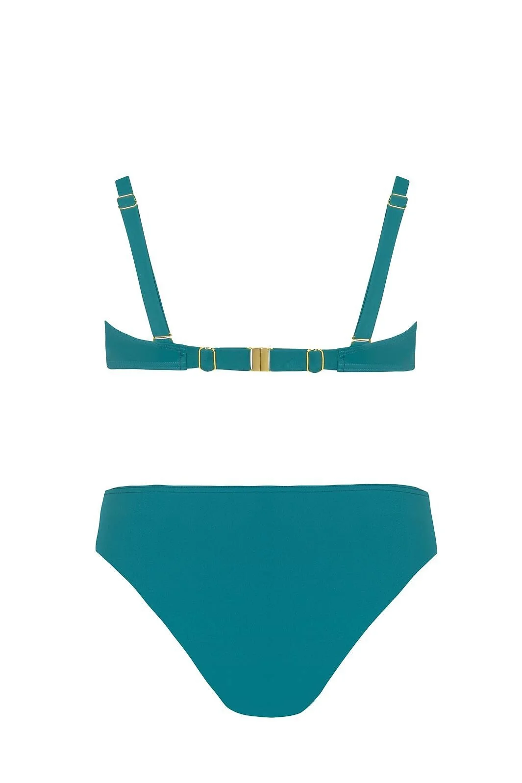 Dvojdielne plavky - vystužený košíček s kosticami - push-up vložka vo vybraných veľkostiach 38C, 40C - nastaviteľné, odnímateľné ramienka - nastaviteľné zapínanie na chrbte - klasické nohavičky so skrytými švami - odolné voči chlóru Zloženie: 85 % polyamid, 15 % elastan