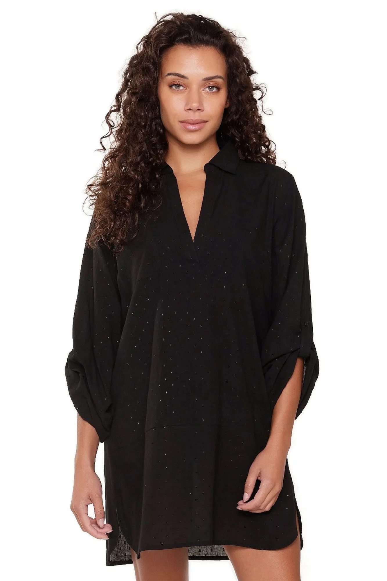 Plážové šaty 7229 black LingaDore - čierne - vyrobené z kvalitnej viskózy - trojštvrťové rukávy - výstrih do VZloženie materiálu: 100% viskóza