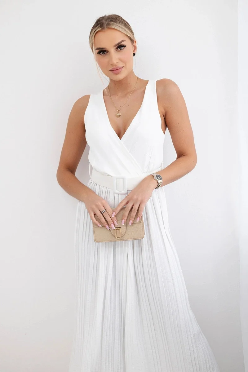 Tento viskózový plisovaný overal s opaskom je elegantnou a pohodlnou voľbou na rôzne príležitosti. Overal je vyrobený z ľahkého viskózového materiálu, ktorý zaručuje priedušnosť a pohodlie aj počas teplých dní. Jeho plisovaný strih mu dodáva ľahkosť a jemnú rafinovanosť, zatiaľ čo doplnkový opasok zvýrazňuje pás a dodáva postave proporcie. Tento overal je ideálny na pracovné stretnutia aj večery a je pohodlnou a elegantnou voľbou pre každú ženu, ktorá si cení štýl a pohodlie. Veľkosť je univerzálna a hodí sa pre osoby vo veľkostiach S, M a L. TALIANSKA VÝROBA Materiálové zloženie: materiálové zloženie: 100 % viskóza, Nižšie uvedené miery sú merané na plocho +/- 1 cm Ak chcete zistiť obvod, vynásobte šírku číslom 2 Rozmery: Šírka v podpazuší: 31 cm/po natiahnutí: 42 cm Celková dĺžka: 136 cm Dĺžka nohavíc od rozkroku: 70 cm Šírka bokov: 66 cm Recept na pranie: Pred čistením oblečenia si vždy prečítajte pokyny na pranie uvedené na vnútornom štítku. Perte pri maximálnej teplote 30 °C, žehlite pri maximálnej teplote 110 °C, Nebieľte ani nechlórujte, Čistite chemicky v benzíne, Nesušte v bubnovej sušičke.