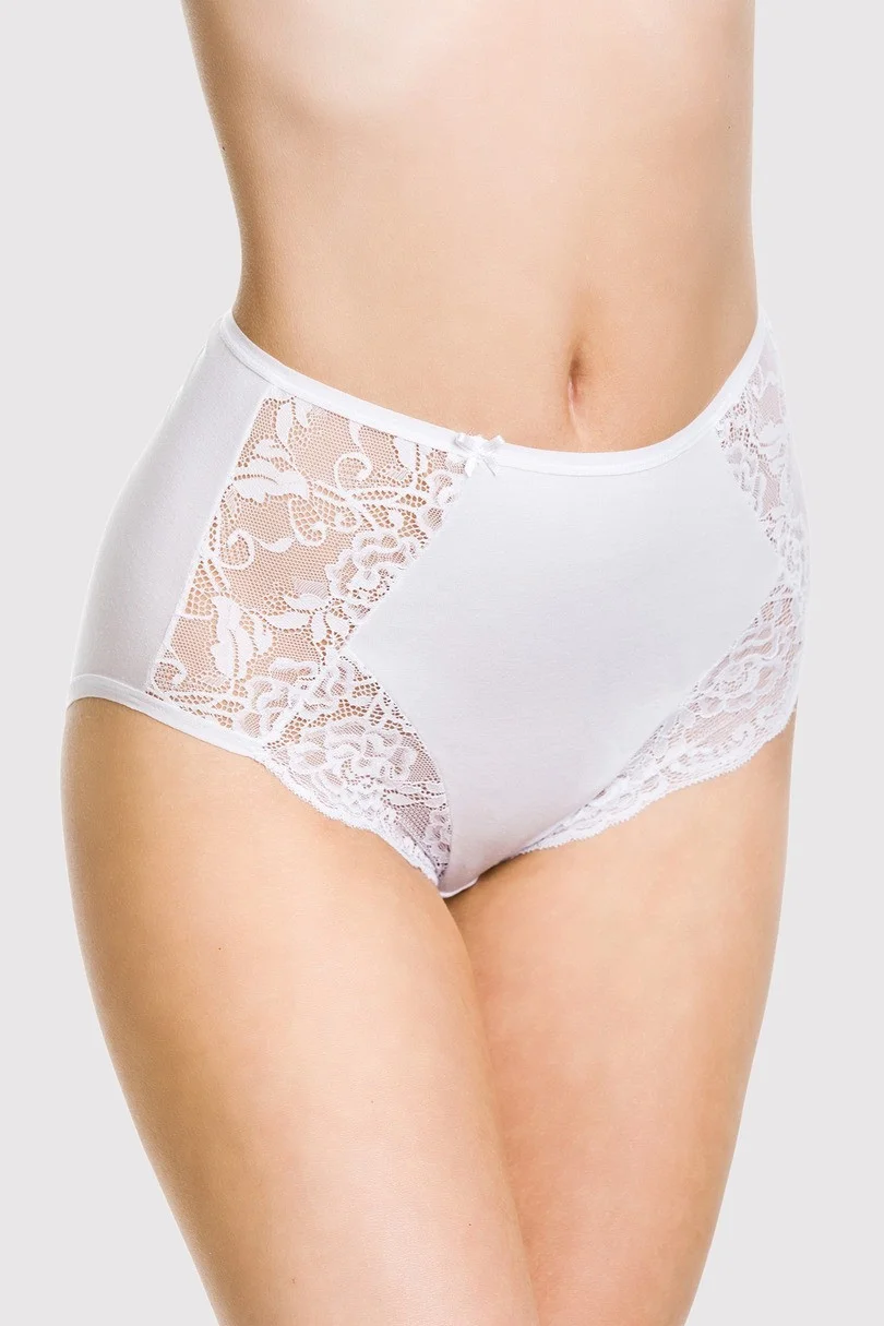 The panties are made of fine cotton,lace inserts on the hips and in the leg area. Full cut with high waist, flat finished seams at the legs and waist for greater comfort.   Substance: 95% Cotton, 5% Elastane. Substance: 95% Cotton, 5% Elastane.