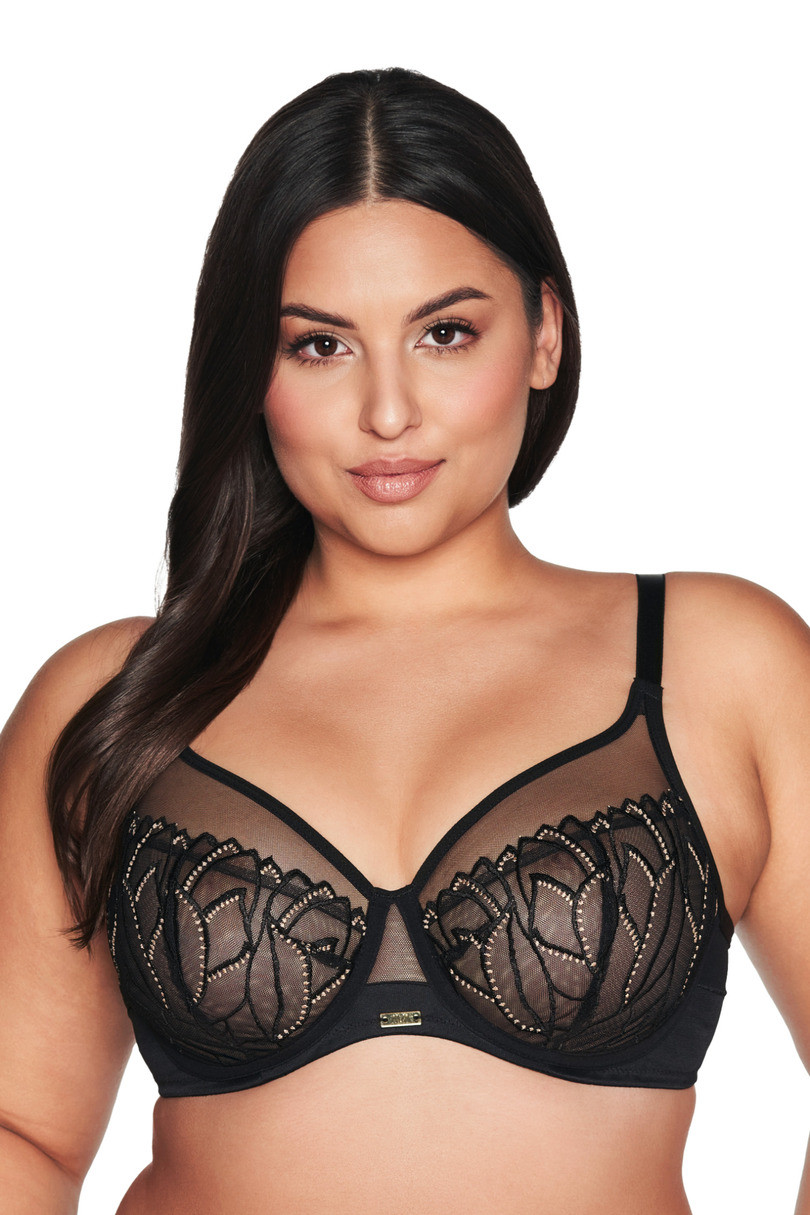 Objavte neobyčajné kúzlo AV 2115 - mäkkej podprsenky s dizajnom K-1396, v ktorej sa elegancia snúbi so zmyselným dizajnom. Zlatom osvetlená zmyselná čierna farba, umiestnená na priehľadnom tyle, vytvára jedinečný motív, vďaka ktorému sa každá žena cíti ako kráľovná zmyslov.Ramienka tejto podprsenky sú neodnímateľné a nastaviteľné pomocou kovového antialergického regulátora, čo umožňuje dokonalé prispôsobenie sa vašej postave. dv