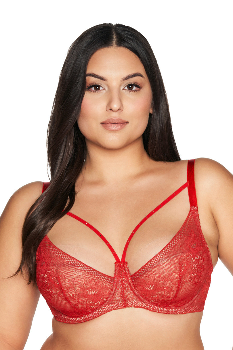 Podprsenka Crown je elegantný a mimoriadne zmyselný model, ktorý zvádza. Táto podprsenka označená ako "polomäkká" s konštrukciou K-1030 spája luxus, estetiku a sofistikovaný dizajn.Košíčky Crown sú v spodnej časti vyrobené z mäkkej béžovej peny, ktorá poskytuje prsiam pohodlnú oporu, a v hornej časti z priehľadného tylu, ktorý im dodáva ľahkosť a jemnosť. Celá podprsenka je dômyselne zdobená červenou čipkou, ktorá