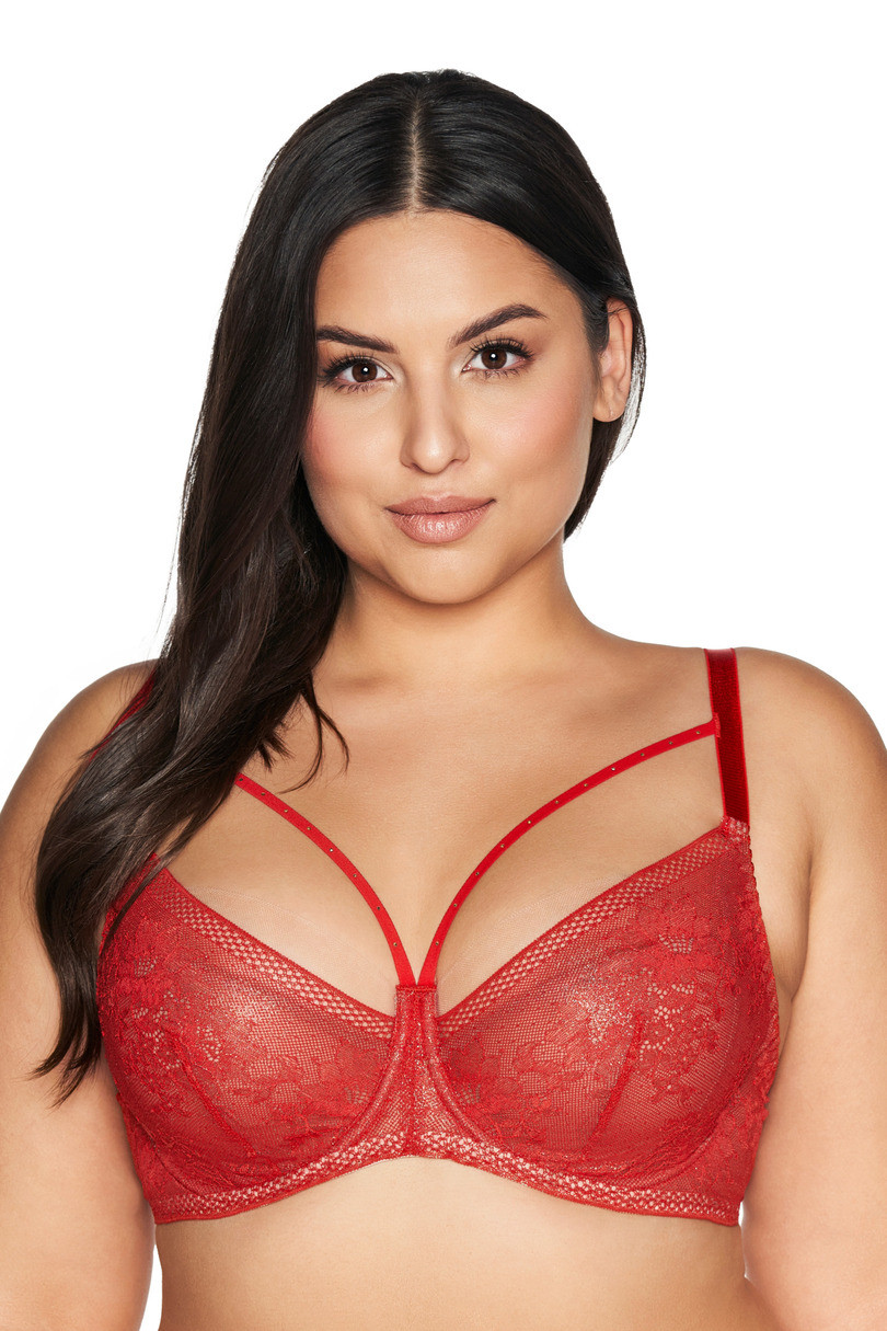 Podprsenka AV 2128 je model, ktorý poteší svojím romantickým šarmom a dokonalým strihom. Táto podprsenka označená ako "mäkká" s konštrukciou K-1130 spája jemnosť, priedušnosť a materiály najvyššej kvality.Dokonale vykrojené košíčky nádherne modelujú poprsie a jemne zakrývajú zvodné, ženské tvary. Ohnivo červená trblietavá čipka na tyle telovej farby zvýrazňuje zvodne okrúhly výstrih, čím dodáva podprsenke nevšedný šarm a eleganciu. Efektné prúžky vo výstrihu dodávajú zmyselný nádych a vytvárajú jedinečný detail.Ramienka, ktoré nie sú odnímateľné, majú zodpovedajúcu šírku