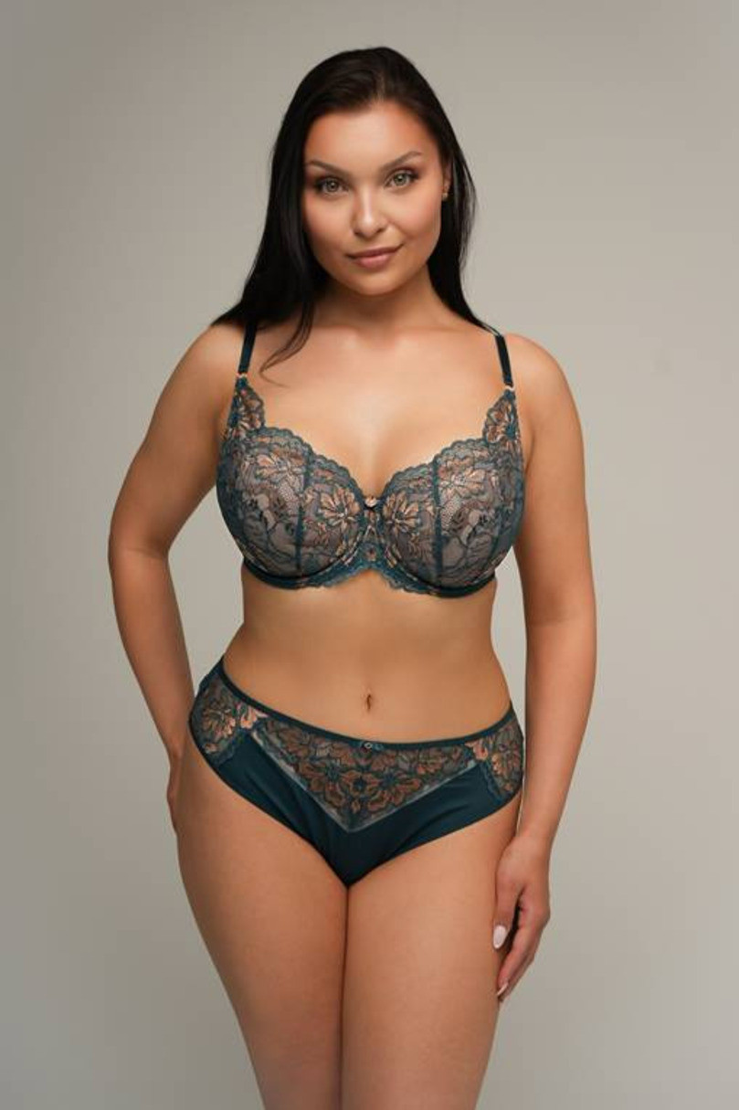 Objavte výnimočné pohodlie a eleganciu s našou čipkovanou push-up podprsenkou, ktorá dokonale zvýrazní ženské krivky. Tento zmyselný model je vybavený vyberateľnými vložkami, vďaka ktorým si môžete individuálne nastaviť úroveň zdvihnutia poprsia. Vďaka vertikálnym strihom košíčkov sa poprsie účinne nadvihne a zaoblí a celok pôsobí mimoriadne žensky a štýlovo. Jemná čipka s kvetinovým vzorom v starozlatej farbe dodáva spodnej bielizni luxusný charakter a hlboký odtieň zelenej farby jej dodáva eleganciu. Zloženie: 77 % polyamid, 10 % elastan, 7 % bavlna, 6 % polyuretán