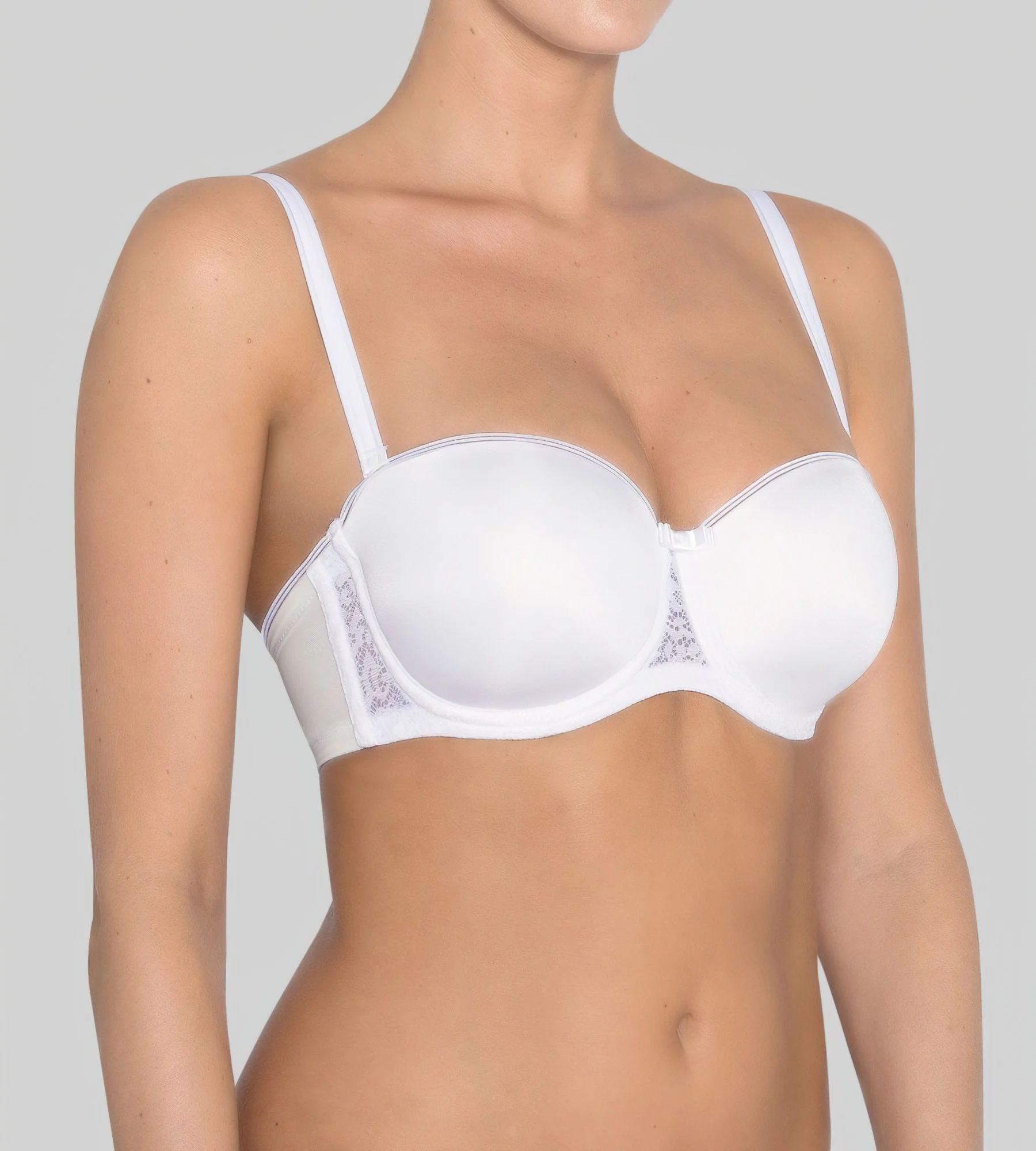 Materiálové zloženie: 54% polyester, 35% polyamid, 11% elastan.Kód produktu: 10167794Hladký satén a ženská čipka spolu s mimoriadne jemným pocitom robia z tejto podprsenky z radu Beauty-Full značky Triumph absolútnu nevyhnutnosť. Je tak dobrá, že je dokonca neviditeľná pod oblečením. Tvarovaná košielkové podprsenka bez ramienok vyrobená z ženskej elastickej čipky. Dokonale tvaruje telo, bez námahy neviditeľná pod priliehavými topy Trojrozmerný drôt Flexi Wire a bočné kostice poskytujú optimálnu oporu Super mäkké zapínanie na háčiky a očká zaručuje vynikajúce pohodlie Nastaviteľné ramienka pre maximálne pohodlie Vyberte si zodpovedajúce podprsenku Tai alebo Hipster z rovnakej série a doplňte svoj vzhľad.
