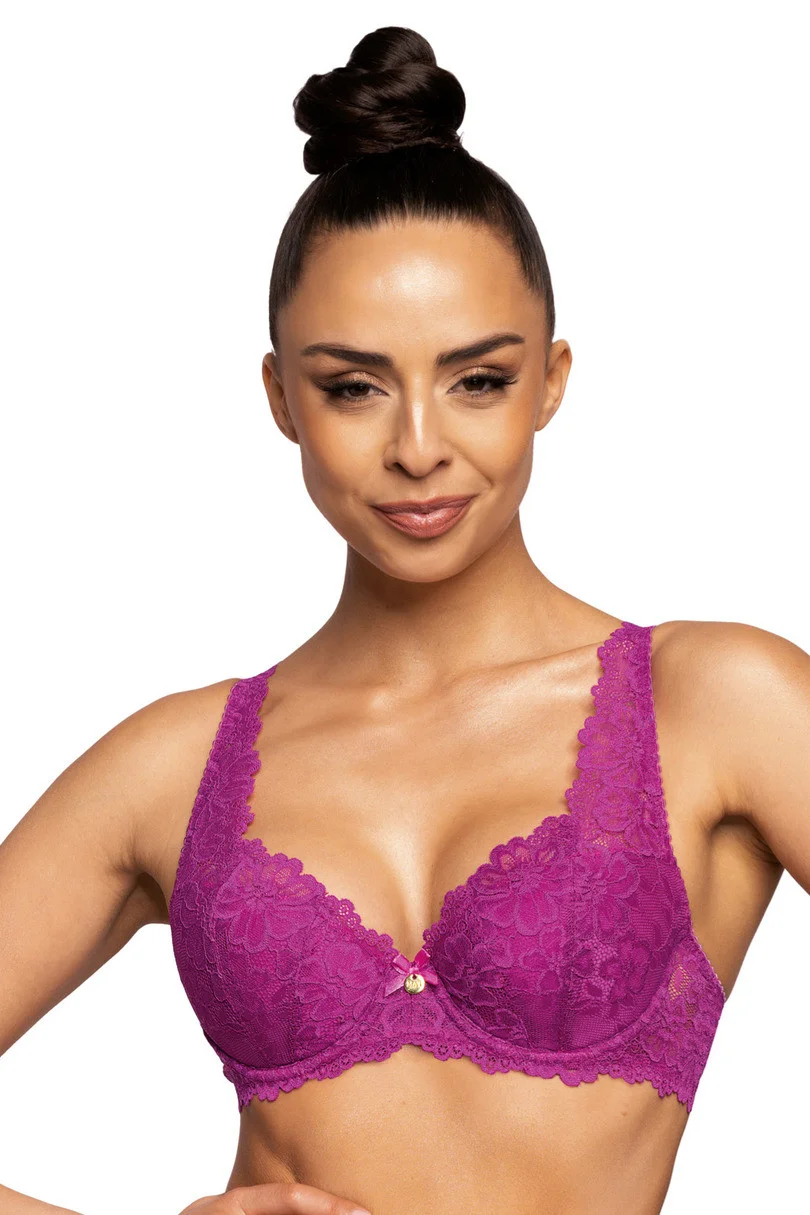 Polomäkká, vystužená čipkovaná podprsenka s kvetinovým motívom, vnútri bavlnená podšívka, boky vystužené vertikálnou kosticou, ozdobné nastaviteľné ramienka, neodnímateľné, ideálne na podporu a zdvihnutie pŕs.Zloženie: 44 % polyamid, 17 % polyester, 17 % bavlna, 17 % polyuretán, 5 % elastan .