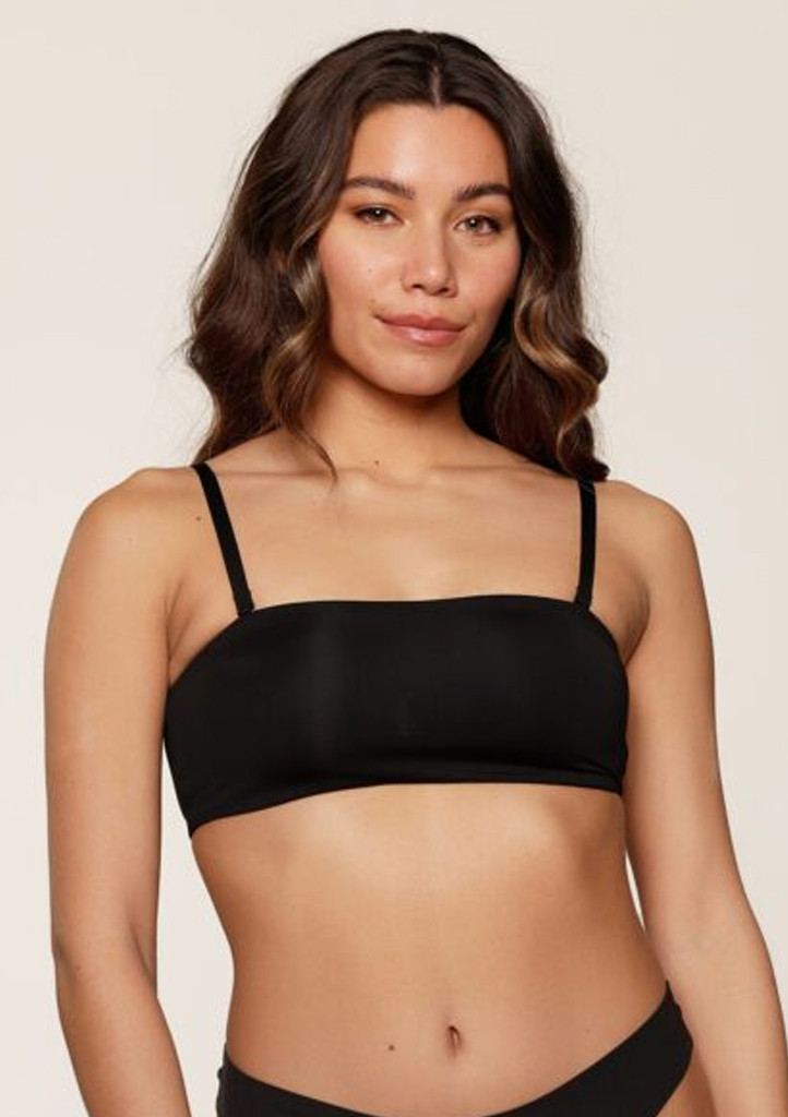 Podprsenka LingaDore Bandeau v elegantnej čiernej farbe je ideálnou voľbou pre topy a šaty bez ramienok. Je vyrobená z mäkkého, hladkého materiálu, ktorý prilieha k telu a poskytuje celodenné pohodlie. Odnímateľné, dĺžkovo nastaviteľné ramienka umožňujú rôzne štýly nosenia - klasické, krížové alebo úplne bez ramienok. Konštrukciu bez kostice dopĺňajú mäkké, vyberateľné vypchávky, ktoré poskytujú prirodzený tvar a ľahkú oporu. Minimalistický, bezšvový dizajn zaručuje, že sa nebude ukazovať pod oblečením. 65 % polyamid, 35 % elastan