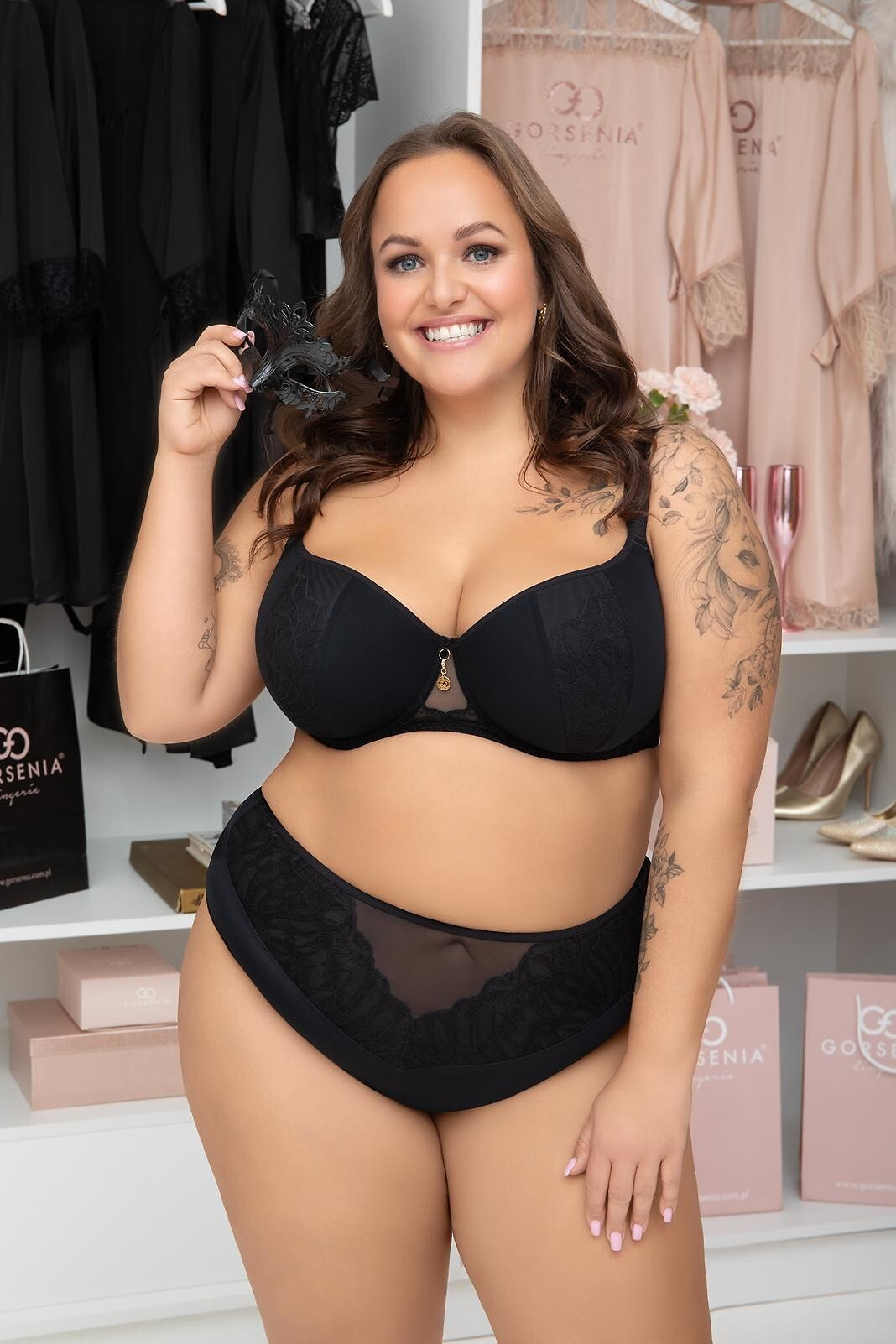 Balkónová podprsenka s vypchávkami - určená pre ženy s malými, strednými a veľkými prsiami - poskytuje zdvíhací efekt a odhaľuje poprsie - trojdielne penové košíčky pokryté elastickým tylom a čipkou - zadná časť z lycry pre veľmi dobré prispôsobenie a podporu - bočné košíčky z veľrybích kostíc, ktoré zabraňujú vyžmolkovaniu - dvoj-, troj- a štvorradový systém zapínania na háčiky s trojstupňovým nastavením obvodu v závislosti od veľkosti - ramienka nastaviteľné v troch šírkach: 14 (odnímateľné), 18 a 22 (neodnímateľné) - ramienka sa dajú vzadu pripnúť, aby neboli viditeľné pod viac odhaľujúcim oblečením na chrbte, aby neboli viditeľné pod viac odhaľujúcim oblečením - vnútorné vrecká na vložky - kovové prvky v čiernej a striebornej farbe (neobsahujú nikel) Zloženie: 90 % polyamid, 7 % elastan, 3 % polyester