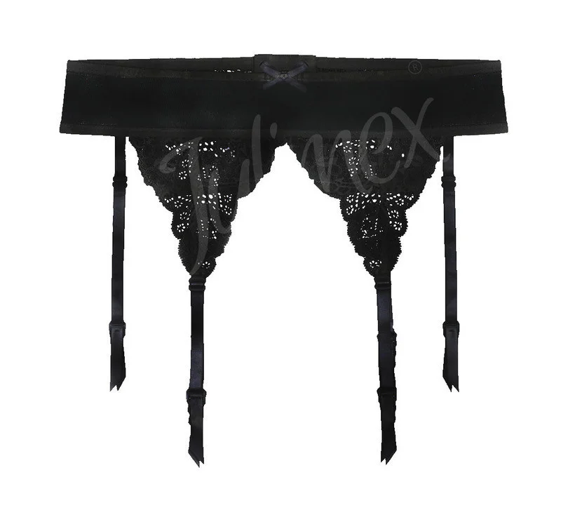 Úzky podväzkový pás z hladkej sieťky, na ktoré sú našité krajkové trojuholníky s mašličkou. Pásky k pančuchám sú regulovateľné. Pas je veľmi jemný a elegantný.