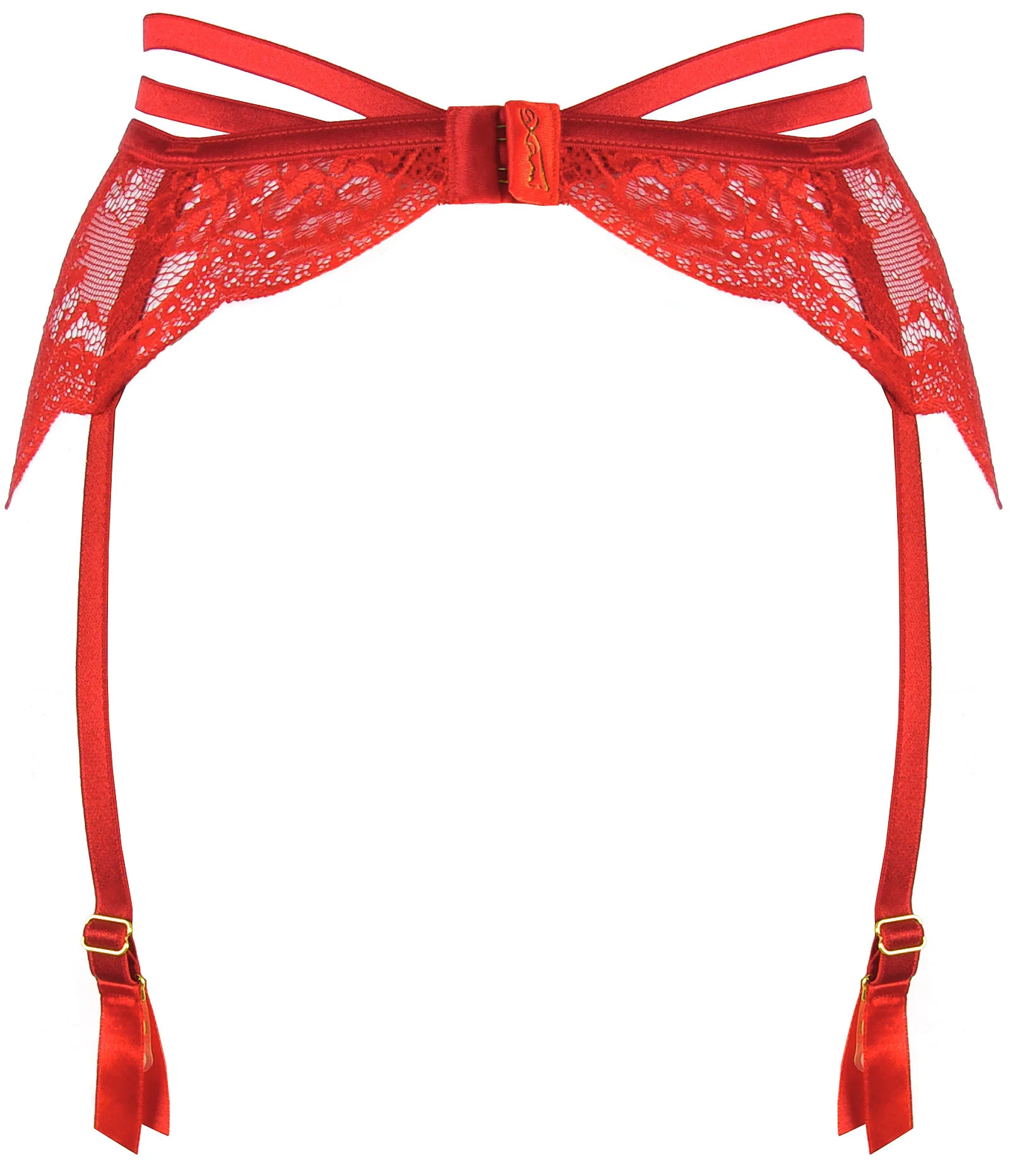 Romantický a očarujúci podväzkový pás V-10722 vás zavedie do ríše fantázie a skrytých túžob, model je vyrobený z kvalitnej červenej čipky na prednej a zadnej strane, podporený systémom stabilizačných pásikov a bočných veľrybích kostíc na zvýraznenie kriviek bokov, zapína sa na dvojitý háčik s možnosťou pripojenia pančúch vďaka podväzkom
