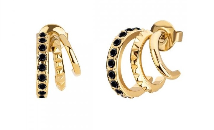 Police Pozlátené polkruhové náušnice s čiernymi kryštálmi PEJLE2010411