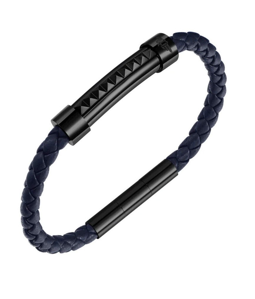 Police Tmavo modrý kožený náramok Rock Rebel PEAGB0001411/2 18 cm