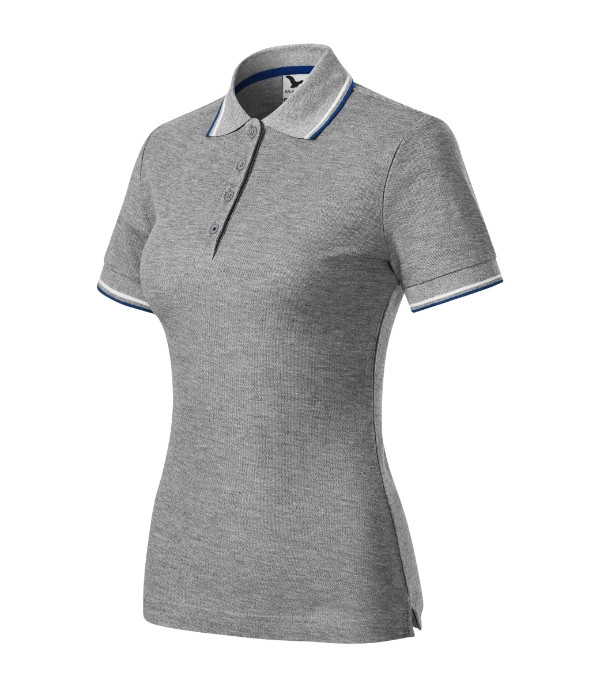 mierne priliehavý strih s bočnými švami 1:1 rebrovaný golier 2 kontrastné pruhy na rukávoch a golieri úzka léga so 4 gombíkmi vo farbe materiálu spodný gombík prišitý kontrastnou niťou vnútorný výstrih zapečatený kontrastnou páskou ramenné švy spevnené páskou rozparky v bočných švoch s kontrastnou páskou