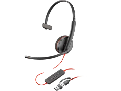 Poly Blackwire 3210 čierna / Náhlavná súprava / mikrofón / jedno slúchadlo / USB-C/A (8X214A6)