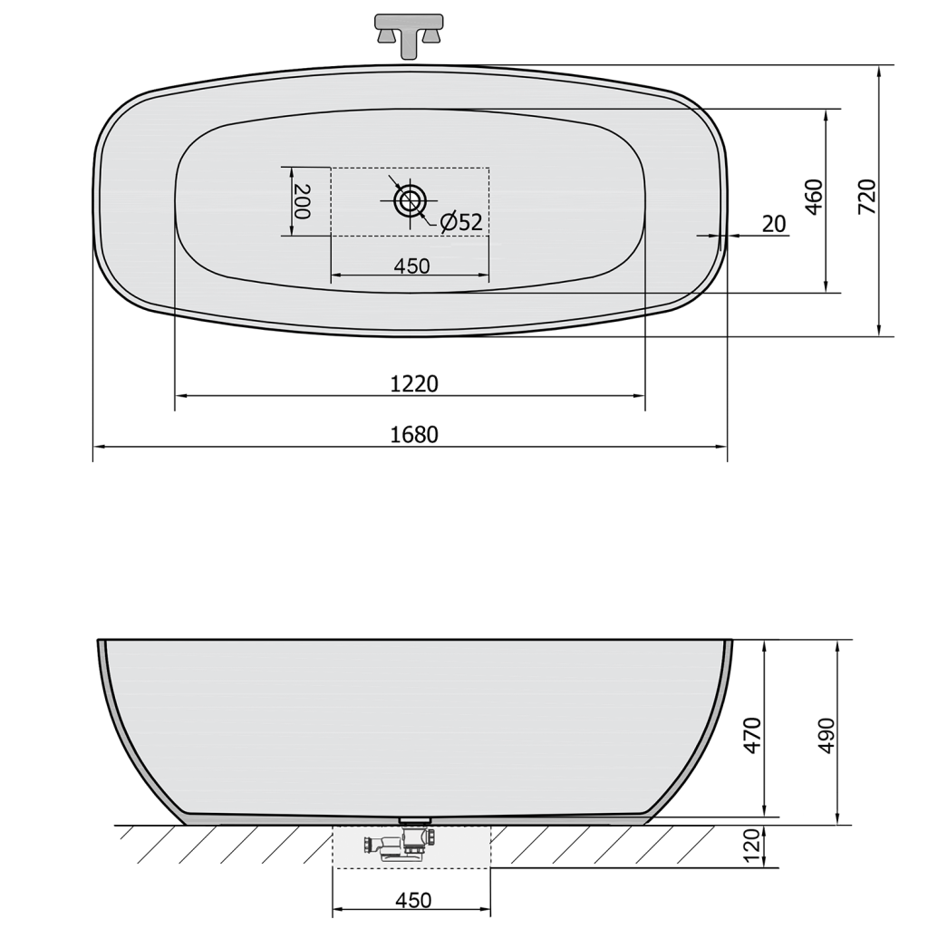 MEXEN - Paola voľne stojaca vaňa k stene 170 x 90, biela lesk bez krytky prepadu a zátky 52741709000-SS