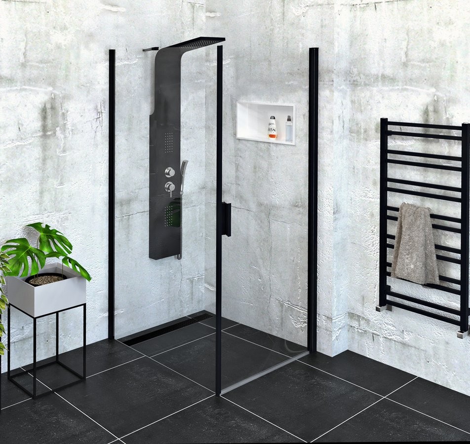 MEXEN/S - Kioto Sprchová zástena WALK-IN 90 x 80 x 30, transparent, čierna 800-090-080-221-70-00-030