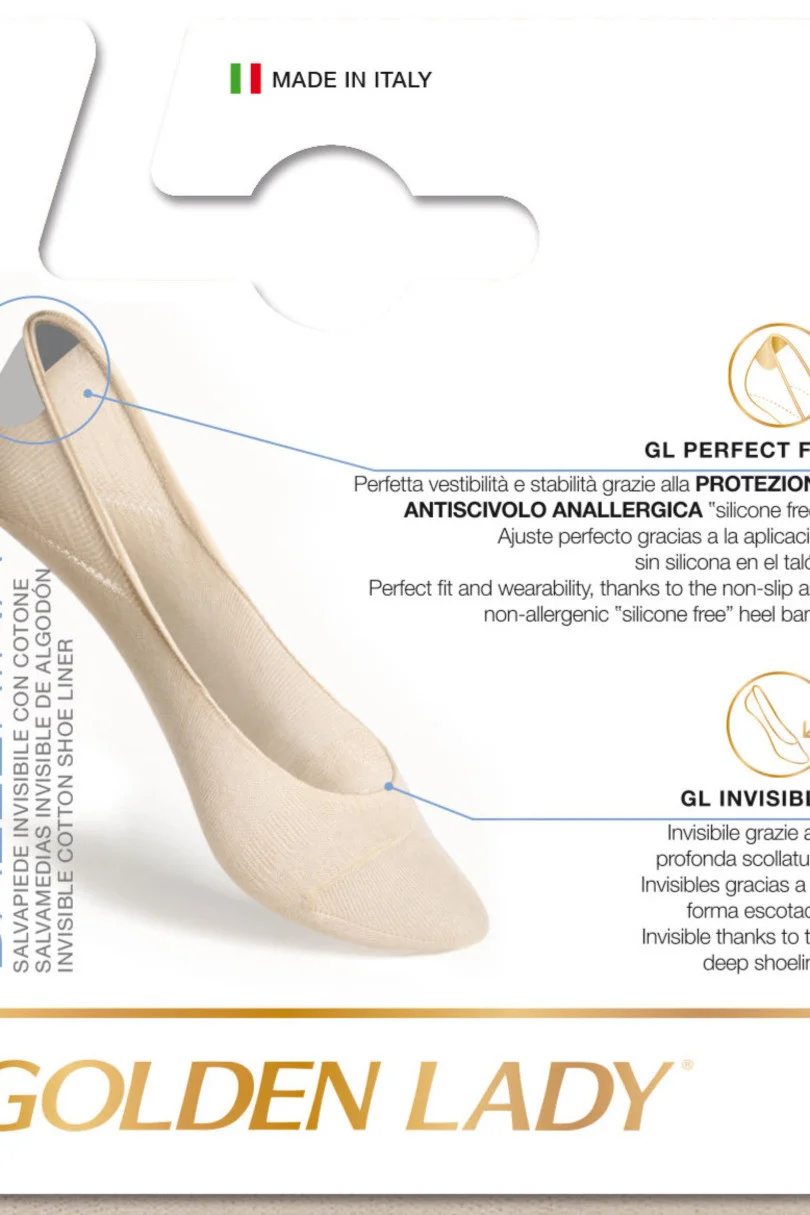 Veľmi pohodlné ponožky balerínky značky Golden Lady. Sú tenké a ušité z kvalitnej bavlny s prídavkom lycry. Silikónový pásik na päte zabraňuje zosúvaniu ponožky. Ideálne do balerínok. Zloženie: 53% bavlna, 40% polyamid, 7% elastan.
