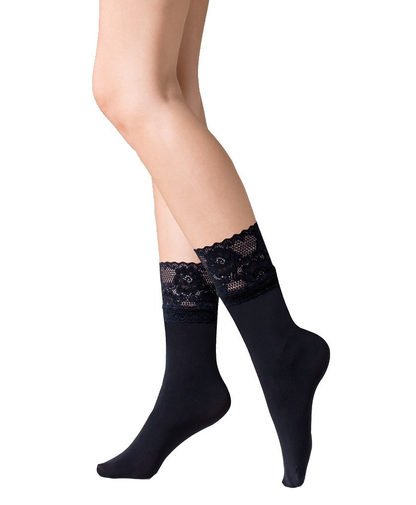 Dámske ponožky z mikrovlákna - čipkované rebrovanie - vnútorná strana lemovaná silikónovým prúžkom Zloženie: 85 % polyamid, 15 % elastan