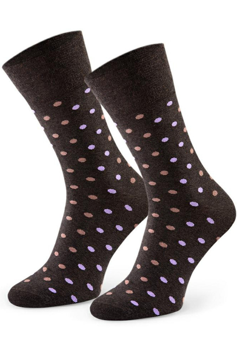 Jemné vzorované pánske ponožky k obleku. Ponožky sú vyrobené z veľmi kvalitnej priadze a sú pohodlné, odolné a majú dlhú životnosť. Zloženie: 71% bavlna, 22% polyamid, 4% polypropylén, 3% elastan.