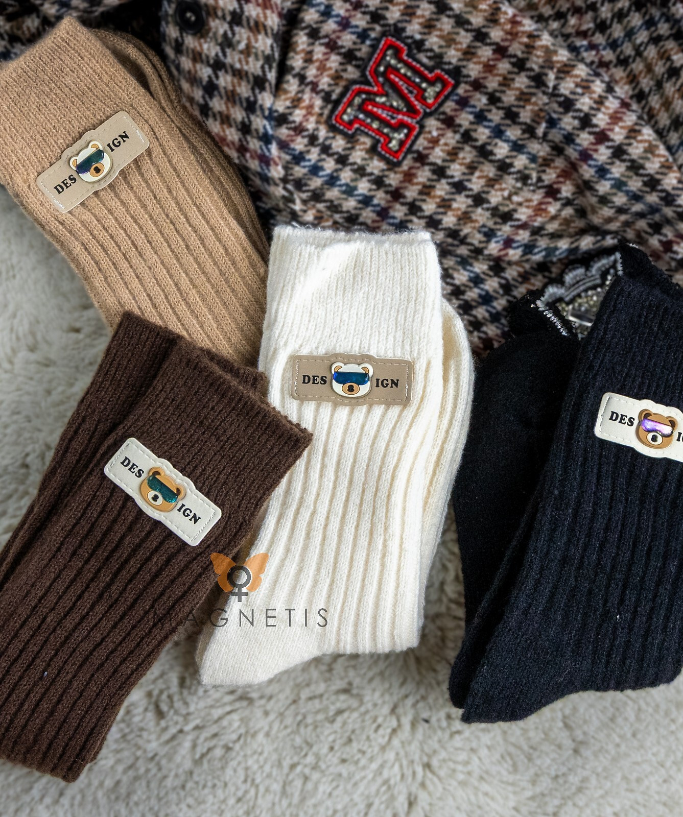 Teplé dámske ponožky - mäkká pletená rebrovaná tkanina - horná časť zdobená medvedíkom s okuliarmi - pohodlný, netlačiaci lem Zloženie: 65 % bavlna, 13 % viskóza, 13 % vlna, 6 % polyamid, 3 % elastan