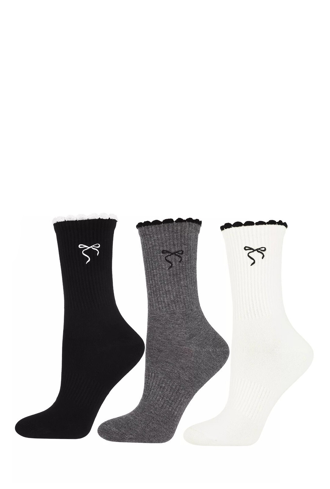 Dámske ponožky - vyrobené z kvalitnej bavlny - zvršok zdobený vzorom - ideálne na každodenné nosenie - dokonale sa prispôsobí vašim nohám - zabezpečujú vysoký komfort pri nosení - dostupné v 3 farbách: čierna, ecru, sivá - náhodný výber Zloženie: 78 % bavlna, 19 % polyester, 3 % elastan