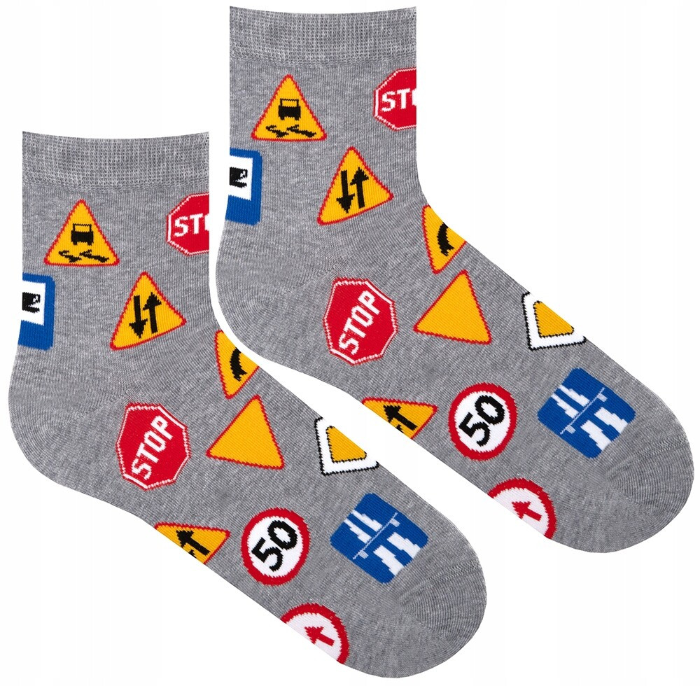 Krátke bavlnené ponožky s potlačou dopravných značiek.