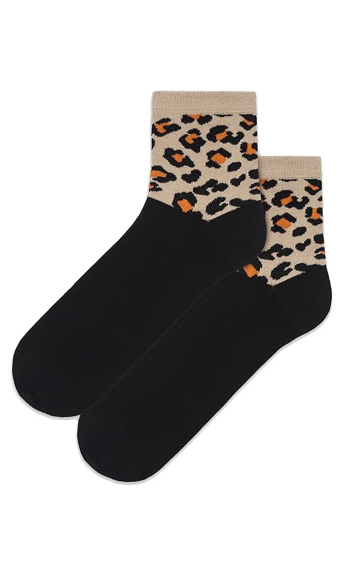 Dámske ponožky - mäkká bavlna - zvieracie vzory - ploché švy - netlačiaci lem Zloženie v závislosti od vzoru: 85-87 % bavlna, 11-13 % polyamid, 2 % elastan
