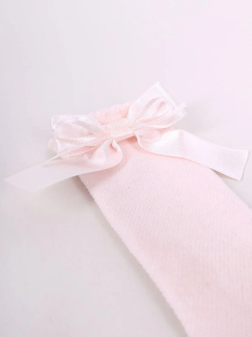 Dievčenské ponožky - mäkký bavlnený úplet - jemný ažurový vzor - rebrovanie zdobené mašľou - dostupné farby: púdrovo ružová, ecru a biela - náhodne vybrané Materiál: 80 % bavlna, 18 % polyamid, 2 % elastan
