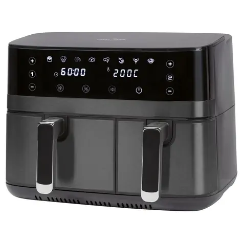 Lauben DualZone Air Fryer 8000BC čierna / Teplovzdušná fritéza / 2700W / 4 +4 L / 80 ° C až 200 ° C / 8 programov / dopredaj (LBAFMDZAF80BA)