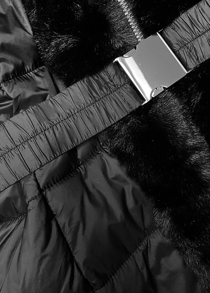Pri výbere veľkosti venujte pozornosť nižšie uvedenej veľkostnej tabuľke. Veľkosti nezodpovedajú bežne nosenému oblečeniu. Prešívaná bunda s kapucňou Bunda je mierne vyteplená, je zateplená syntetickou páperovou výplňou, má pás so sponou, dve vrecká na zips a zapínanie na zips. Model má kapucňu, ktorá sa nedá odopnúť. Bunda je zdobená kožušinou, ktorá sa nedá odopnúť. Model má dĺžku do polovice stehien. Materiál: 100% polyester.