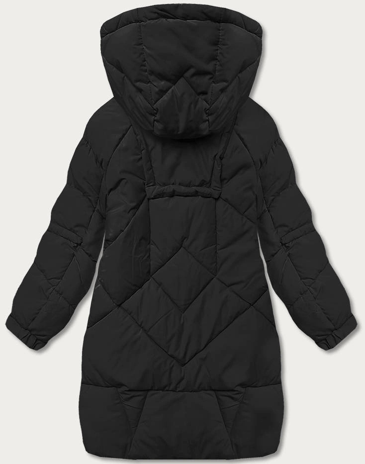 Čierna dámska páperová bunda s ozdobnými pásmi (AG2-J85) odstíny černé XL (42)