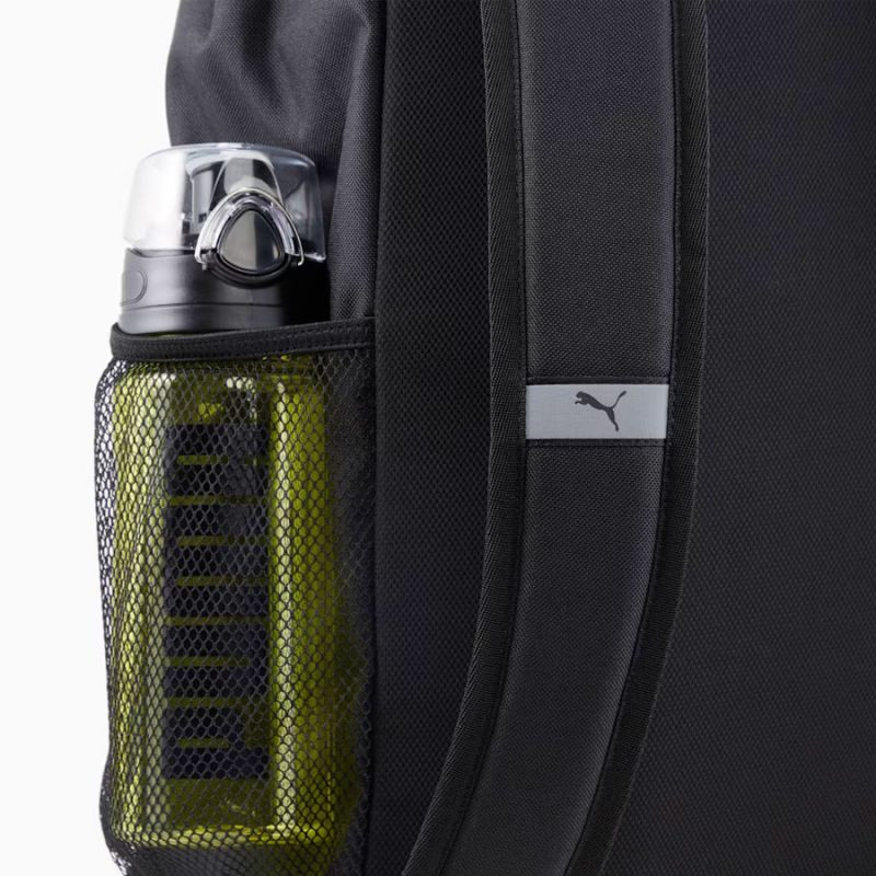 Vlastnosti: Batoh Puma sa osvedčí pri každodennom používaní. Hlavný priestor sa otvára pomocou dvojcestného zipsu. Predné vrecko na zips. Bočné sieťované vrecká. Nastaviteľné a polstrované ramenné popruhy Rukoväť na popruhu. Materiál: materiál: 100% polyester Farba: polyester: farba: čierna