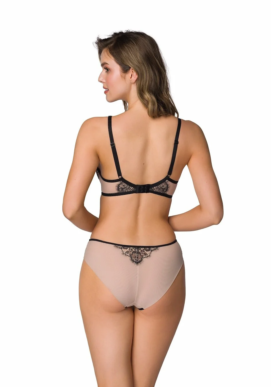 Push-up podprsenka - čipkované košíčky s kosticami - z vnútornej strany podšitá mäkkou bavlnou - vyberateľné push-up vypchávky - ozdobné ramienka, nastaviteľné, neodnímateľné - elastické sieťované boky bez veľkých bočných kostíc - trojcestné zapínanie na dva alebo tri háčiky Zloženie: 34 % polyamid, 23 % bavlna, 23 % polyester, 17 % polyuretán, 3 % elastan