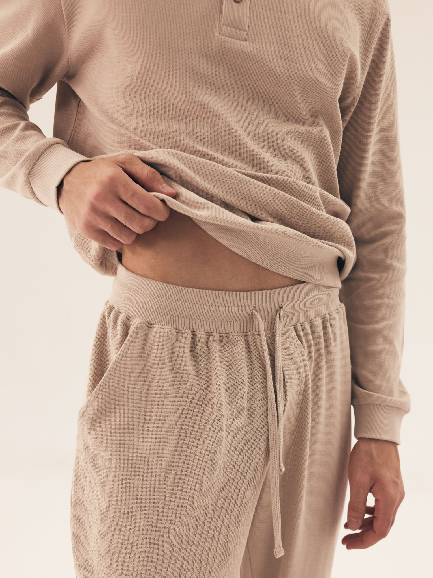 Blúzka s dlhými rukávmi Polkruhový výstrih Otvorené gombíky Ideálna aj ako domáce oblečenie Voľný, pohodlný strih Mäkká a vzdušná tkanina Model dostupný v mnohých farbách alebo vzoroch Model s vreckami Nohavice s rebrovaným lemom Balené vo vrecku Prešívaná tkanina Rukávy s rebrovaným lemom Dlhé nohavice Široký elastický pás Sťahovacia šnúrka v páse Bavlna: 100%