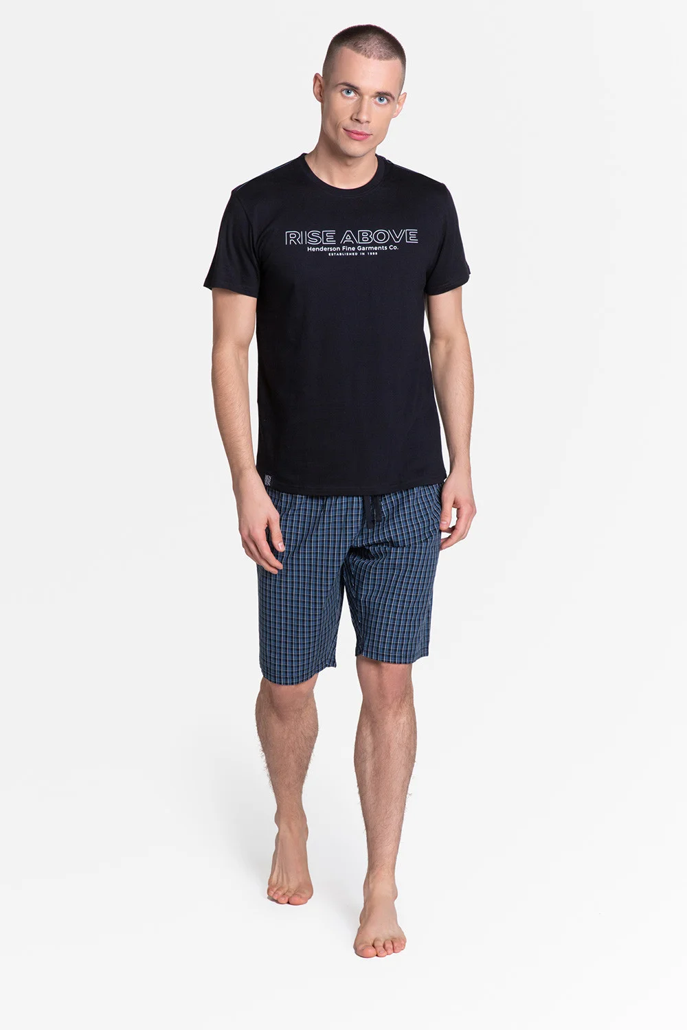 Skvelé pánske pyžamo v atraktívnej farbe. Športová, pohodlná verzia, kombinovaná s nohavicami v dĺžke pod kolená s módnym kockovaným vzorom. Čierne tričko s potlačou uprostred vám umožní vyzerať skvele a zároveň byť v plnom pohodlí a nohavice so zaujímavým klasickým vzorom sú tu zaujímavým akcentom. Rozmery . Veľkosť M: hrudník 90-96 cm, pás 82-88 cm Veľkosť L: hrudník 96-102 cm, pás 90-96 cm Veľkosť XL: hrudník 102-108 cm, pás 98-104 cm Veľkosť XXL: hrudník 108-114 cm, pás 106-110 cm Veľkosť XXXL: hrudník 114-120 cm, pás 112-116 cm Bavlna 100%