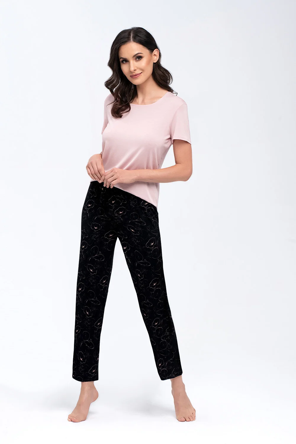 Pohodlné a praktické pyžamo nemusí byť nudné! Pyžamo pozostávajúce z nohavíc a blúzky s krátkym rukávom. Klasické nohavice v dĺžke 7/8 vám zaistia pohodlie počas chladnejších jesenných nocí. Súčasťou sady je aj blúzka s okrúhlym výstrihom. Elastan 6% Viskóza 94% Veľkosť Obvod bedier Obvod pŕs L 101-106 cm 95-100 cm M 95-100 cm 89-94 cm S 89-94 cm 83-88 cm XL 107-114 cm 101-108 cm