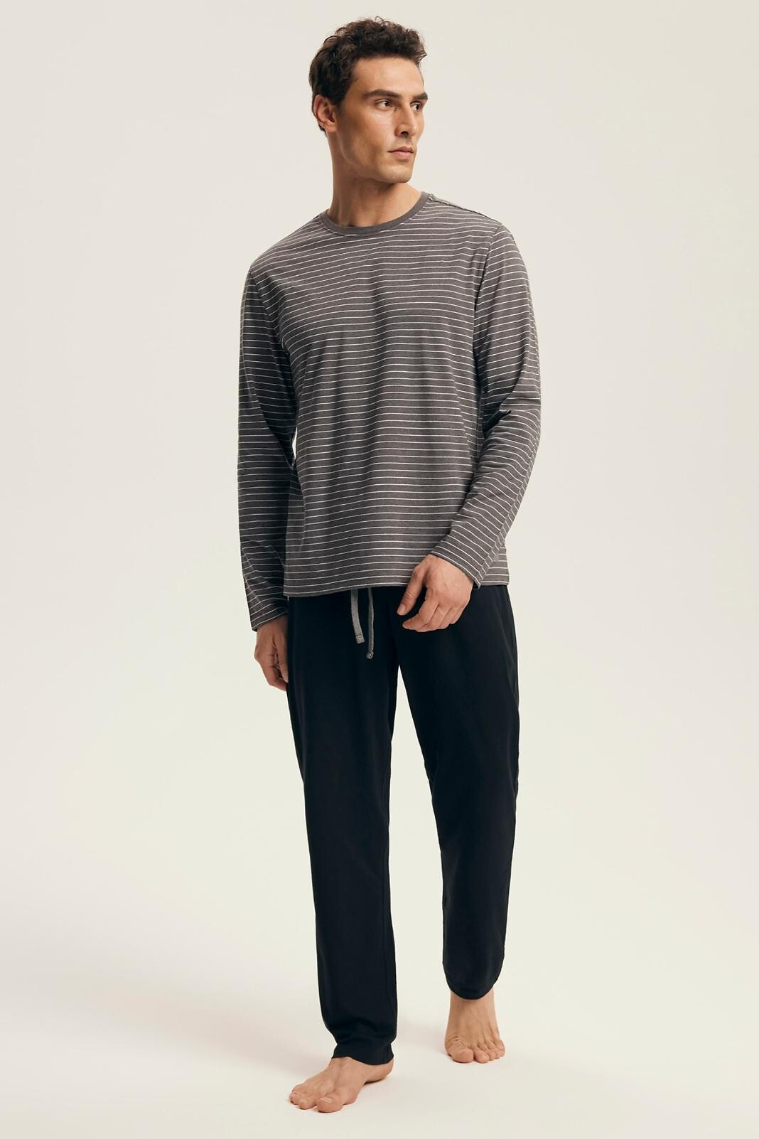 Pánske bavlnené pyžamo - pruhovaná blúzka s dlhými rukávmi - okrúhly výstrih - nášivka s logom HENDERSON na leme - dlhé jednofarebné nohavice, ktoré sa k nej hodia - pohodlný elastický pás - zabalené v krabici Zloženie: 100 % bavlna