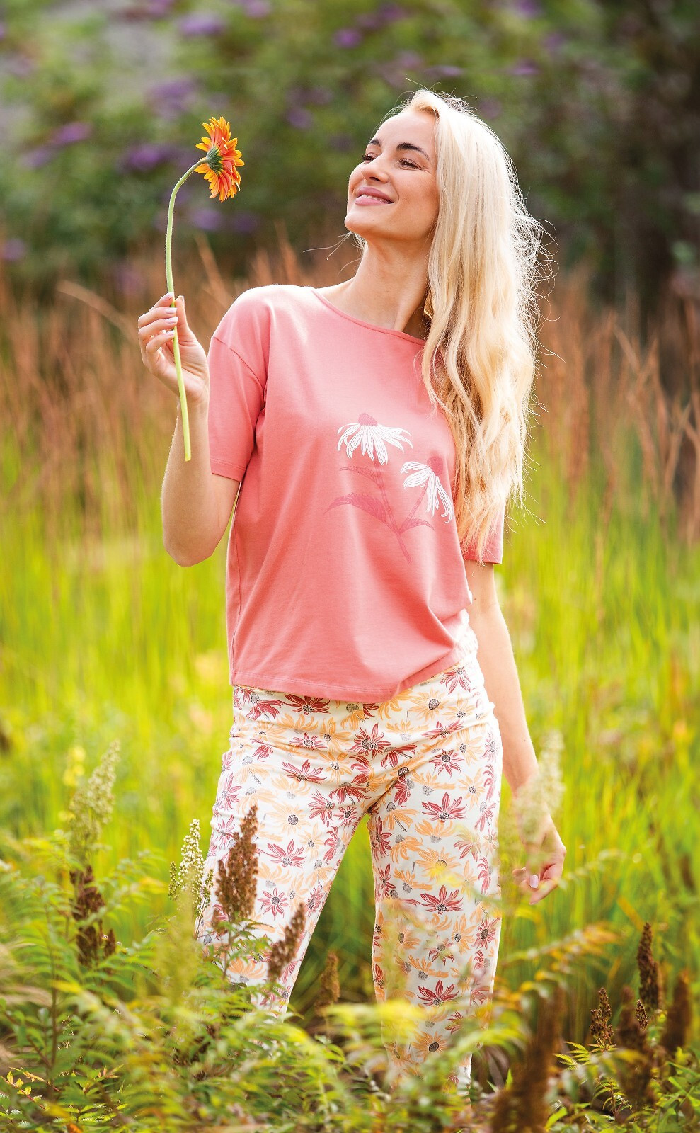 Dámske letné pyžamo - tričko s krátkym rukávom - polkruhový výstrih - predná časť zdobená farebnou potlačou - 3/4 nohavice so vzorom - pohodlné vrecká - pás podšitý bavlnou Zloženie: 95 % bavlna, 5 % elastan